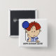 A little red haired boy with a blue balloon and blue shirt on a button you can customise with your choice of text, his name, and age! Perfect for all who are attending the birthday party!