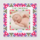 Custom Jolly and Festive Christmas Photo Picture Frame Square Magnetic Gift Card. A colourful and bright fridge magnet keepsake. Replace the photo and text with your own to celebrate your Yuletide memories. Give as a stocking filler keepsake gift to family and loved ones. In warm winter colours of red, green and orange and purple. With hints of icy blue. A budget friendly present for grandparents, parents, couples, siblings and best friends to celebrate a baby’s first Christmas. A merry and bright colour block pattern frame borders the picture. Based on colourful, traditional designs. Use as a cheap way of decorating the Christmas or home office. Have a maximalist Christmas!