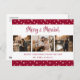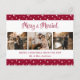 Custom red photo wedding announcement holiday postcards featuring a starry red background with 3 photos in the centre and a beautiful hand-lettered script title above. Easily personalise this red holiday postcard with your images, message, and your family name. You can also personalise the font and change the colour of the text and the background as well.