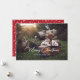 Custom red photo Christmas cards featuring a snow overlay and a beautiful festive script title on the front and stars on a plain red background at the back. The background can be changed to any colour. Easily personalise these red photo Christmas cards with your image and a family name.