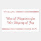 Elegant and meaningful, this deep red and white rectangular sticker features the phrase “Box of Happiness for Her Majesty of Joy,” which can be replaced with your own message. Add the recipient’s initials for a thoughtful, personal touch. A simple yet powerful design that beautifully expresses appreciation, joy, and positive energy — perfect for gift boxes, packaging.