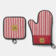 Custom Red & White Stripe Oven Mitt & Pot Holder Set