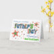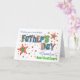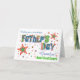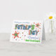 A bright and colourful Father's Day card for you to personalize with the name of the recipient or any relation (Grandpa shown). The front cover message is 'Wishing you a very happy FATHER'S DAY' followed by a space for you to write the name of the recipient, and 'Best Dad Ever!' at the bottom of the design. The words, 'FATHER'S DAY' are filled with colourful patterns in bright colours and dark blue and there are two matching stars in opposite corners. There are tiny colourful stars and hearts dotted about all over the white background. You can easily customize the inside message as well as the front cover.