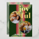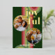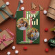 Contemporary classic Christmas holiday season greeting card with light and dark green, pink and red coloured abstract pattern with real gold foil JOYFUL wish text. With room to customise or personalise with two photos and family name (or individual names) on the front, and a customisable season greeting message on the backside of the card.