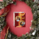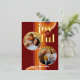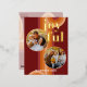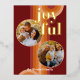 Contemporary classic Christmas holiday season greeting card with light and dark red, coral and pastel peach orange coloured abstract pattern with real gold foil JOYFUL wish text. With room to customise or personalise with two photos and family name (or individual names) on the front, and a customisable season greeting message on the backside of the card.