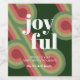 Contemporary classic Christmas holiday season gift label with light and dark green, pink and red coloured abstract pattern and JOYFUL wish text in crisp white. With room to customise or personalise with a family name (or individual names) and a personal season greeting message.