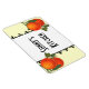 A kitchen fridge magnet with deco letters and vintage art of oranges and orange flowers on a creamy background.