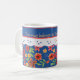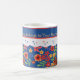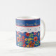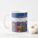 A pretty White Ceramic Coffee Mug to personalize, with a nostalgic feel and a retro Floral mini-print pattern on a Deep Blue background, trimmed with White Lace-effect. Part of the Posh & Painterly 'Granny Print' collection, this mix'n'match hand-painted paper collage pattern can be easily adjusted to fit any Mug.