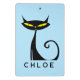This personalised pocket mini clipboard design features a retro mid century modern "atomic" black cat with big yellow eyes and a curly tail.