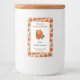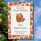 A custom sticker with vintage kitchen crate art of oranges with small blossoms on the background and label, with brown retro and script letters for your handmade recipe, your name or company, and more info.