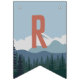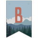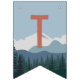 Designed to match our On The Edge kids rock climbing birthday party invitations, this fun and adventurous bunting flag design features fourteen custom text fields to spell out your message (shown with "Happy Birthday") on a mountain range and pine forest background. The first and last flags have an additional illustration of a mountain climber hanging from a rock.