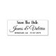 Easily personalise these custom Romantic Save The Date self-inking rubber stamps with your own names and address. To customise these rubber stamps, click on "Personalise this template" and change the text in the boxes provided. Available in 9 different colours and 6 sizes. Please view your design on the monitor as close to actual size as possible to ensure that the text prints at the expected size. For use as a return address stamp most people will require a larger size than this. These return address self-inking rubber stamps stamp up to 10000 impressions with each cartridge, have a soft touch for secure grip and ink-free fingers and an eco-friendly manufacturing process. No minimum order quantity.