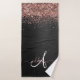 Custom Rose Gold Glitter Black Sparkle Monogram Bath Towel Set