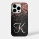 Custom Rose Gold Glitter Black Sparkle Monogram iPhone Case
