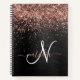 Custom Rose Gold Glitter Black Sparkle Monogram Notebook