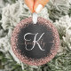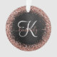 Custom Rose Gold Glitter Black Sparkle Monogram Ornament
