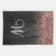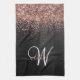 Custom Rose Gold Glitter Black Sparkle Monogram Tea Towel