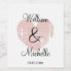 Custom rose pink heart wedding wine bottle labels. Personalised elegant wine label template with vintage heart. Stylish script typography for names of bride and groom. Use as classy table decoration or thank you favour for guests at the party. Includes name or monogram plus date of marriage. Romantic country chic design with rustic print. Also great for beach theme weddings.