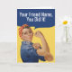Custom "We can do it" Custom Rosie The Riveter womens Feminist second war propaganda congratulation funny card featuring personalised text. Create your own design adding your friend name, slogan or any text on the vintage comic balloon. Add your personal message inside or delete it. This Rosie The Riveter womens feminist congratulation card is perfect for give a smile to friend, sister, wife, teacher, grandmother, and any wonderwoman of your life.