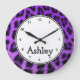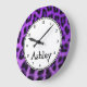 Custom Round Purple Cheetah Large Clock