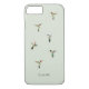 This custom phone case is featuring a charm of ruby-throated hummingbirds, male and female, on a pale green background. The font, font size and colour can be easily changed by clicking on "customise further".