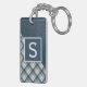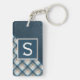 Custom Rustic Dark Blue Brown Stripe Plaid Pattern Key Ring