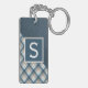 Contemporary tan, brown, beige, taupe, and dark teal blue coloured tartan plaid, and a faux leather texture pattern background. With room to customise or personalise with a name monogram or initial of your choice. Beautiful, modern, and cool keychain or suitcase luggage tag for the trend-savvy and art-loving hip trendsetter, artsy motif lover.