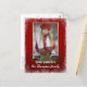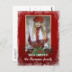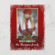 Unique, classic, trendy, pretty and decorative Holiday card, with a pretty dark red and green coloured country cottage style floral wreath pattern. With room to customise or personalise with a photo and names (or family name) of your choice. And a customisable season greeting poem on the backside of the card.