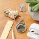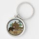 Personalised keychain for campers, hunters, fishermen, canoe enthusiasts and outdoors men. Log Cabin in the woods with wildlife on camouflage background. Customise it with your own name and other personal information.