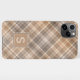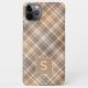 Contemporary tan, brown, beige, taupe, and ivory cream white tartan plaid pattern. With room to customise or personalise with a monogram or initial of your choice. Beautiful, modern, and cool cover for the trend-savvy and art-loving hip trendsetter, artsy motif lover who wants to protect their phone from dust and dirt, wear and tear. This design is available in Apple iPhone 6, 7, and 8 Plus, 10 or X, XR, XS, 11, 12, 13 Mini, 14, 15 Plus, and Pro Max cellphone cases. Show off your style, look fashionable trendy, and feel stylish with a unique design on a mobile device accessory of your choice.