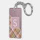 Custom Rustic Pink Green Stripe Plaid Pattern Key Ring