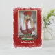 Unique, classic, trendy, pretty and decorative Holiday card, with a pretty dark red and green coloured floral wreath. With room to customise or personalise with a photo and names (or family name) of your choice on a rustic country cottage style weathered farmhouse barn wood planks texture pattern. And a customisable season greeting poem on the backside of the card.