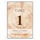 The design of the table numbers features a printed wood tree ring background, reminiscent of the natural beauty of rustic settings. The brown typography stands out against the wood grain, ensuring that the numbers are easily visible and readable.