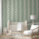 Custom Sage Green 70s Retro Leaf Pattern Wallpaper