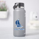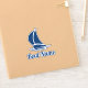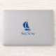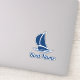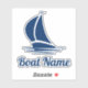 Custom sailing boat name vinyl stickers. Personalise your stuff like laptop computer, tablet, water bottle, phone and more. Add your own personalised name, funny saying or inspirational quote. Available in small and large sizes. Upload your own cut-out logo image optionally. Navy blue or custom colour. Sailboat silhouette with flag and stylish script typography template.