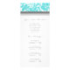 Custom salon menu rack cards in elegant and feminine bright turquoise teal sky blue, dark charcoal grey and white classic floral damask pattern. Personalise these price list cards with all your salon or spa services to provide your customers with a quick and easy way to know all their options. Contact us for a custom colour or for matching small business products.