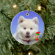 Custom Samoyed Dog Photo with Cute Elf Ceramic Tree Decoration
