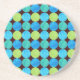 An eye-catching round Sandstone Coaster, with a grid pattern of Turquoise, Dazzling Blue, Emerald and Neon Green Circles on a Black background that you can easily change if you with - Royal Blue and White both look good. Part of the Posh & Painterly 'Blue Moons' collection, based on a hand-painted paper collage by Judy Adamson.