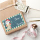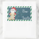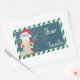 A festive rectangular kid blue gift tag sticker with a watercolor Santa checking his list , and a white a green stripe pattern frame . Personalise it with the child's and giver's name . Check our collection for more .