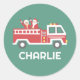 Custom Santa Claus on a Christmas Firetruck Classic Round Sticker