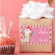 A very cute rectangular pink kid gift tag sticker with a watercolor Santa checking his list and a white and red candy cane stripe pattern frame . Personalise it with the child' name . Check our collection for more .