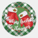 Custom Santas Mittens On Red Green Plaid Pattern Classic Round Sticker
