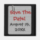 "Save The Date!" in bold red and the date in bold black text on a note written on a lined sheet of paper with a paper clip on a black background. A fun, but very practical magnet that's sure to be the perfect reminder for anyone. Easy to Customise the text in your own words and that special day not to be forgotten! You can Customise the font style and colours as well as change the background colour if desired! Great for your guests for upcoming weddings, birthdays, anniversaries, showers, reunions, any special occasion. Just don't forget to save that date!