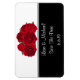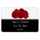 Custom save the date magnet shown with a red roses print.