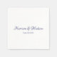 Personalised navy blue Script Custom Couple Name and Date Wedding Paper Napkins.