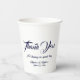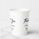 Elegant dark navy blue and white custom script text Wedding Paper Cups