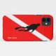 The ideal case and perfect gift for any scuba diver or dive master diving professional. Features a diver silhouette against a diver down flag with a custom text box to add a phrase or name to make a unique iPhone case.