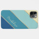 Contemporary girly classic blue, teal turquoise, mint green, and pastel yellow coloured striped cell phone case. With room to customise with a name, monogram, or initials of your choice. Beautiful, modern, and cool cover for the trend-savvy and art-loving hip trendsetter, artsy motif lover who wants to protect their phone from dust and dirt, wear and tear. This design is available in Apple iPhone 6, 7, and 8 Plus, 10 or X, XR, XS, 11, 12, 13 Mini, 14, 15 Plus, and Pro Max cellphone cases. Show off your style, look fashionable trendy, and feel stylish with a unique design on a mobile device accessory of your choice.
