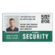 Customisable security badge with a geometric background pattern. Personalise with your ID photo, company, name, job title, ID number, issue date, expiration date and a scannable QR code. A versatile design that suits many different workplaces and professions, including private security guard, close protection officer, store security, personal bodyguard, official doorman, retail worker, medical staff pass and more. Printed colours: green, blue, gold, black and white. Quality magnetic back. Shop the collection for more badges and tags for sale online, designed for the security service industry.