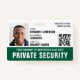 Personalised security ID badge with fully customisable text. This editable template includes your ID photo, name, job title, ID number, company name, issue date, expiration date, logo and a QR code. All the text can be customised or deleted, so you can tailor it to suit your business. A versatile design that suits many different workplaces and professions, including private security, security guard, security officer, store security, personal bodyguard, official doorman, retail worker, medical staff and more. Printed colours: Hunter green, black and white. Shop the collection for more badges and tags for sale online, designed for the security service industry.